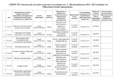 Обучение в ГБПОУ РБ УКИиК им.С.Низаметдинова  осуществляется на русском языке.