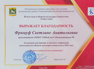 17 декабря в Учалинской филармонии состоялась торжественная церемония«Успех года», где подвели итоги работы в сфере культуры и искусства Учалинского района.
