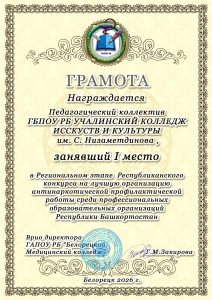 Учалинский колледж искусств и культуры им. С. Низаметдинова занял почётное 1 место. Конкурсная работа представлена на Республиканский этап конкурса на лучшую организацию антинаркотической профилактической работы в образовательных организациях Республики Башкортостан. vk.com/wall-162768460_16437