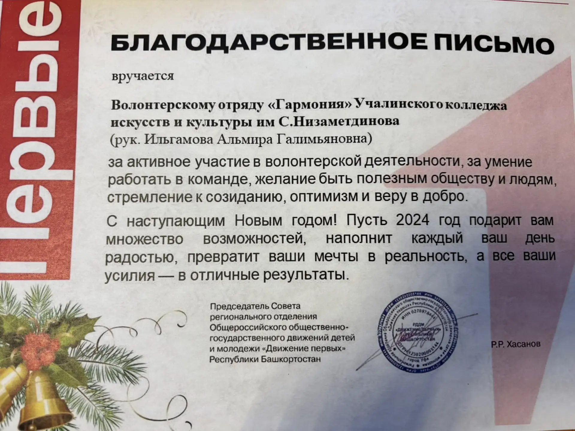 Совет первичного отделения РДДМ «Движение Первых» ГБПОУ РБ Учалинский колледж искусств и культуры им.С.Низаметдинова: