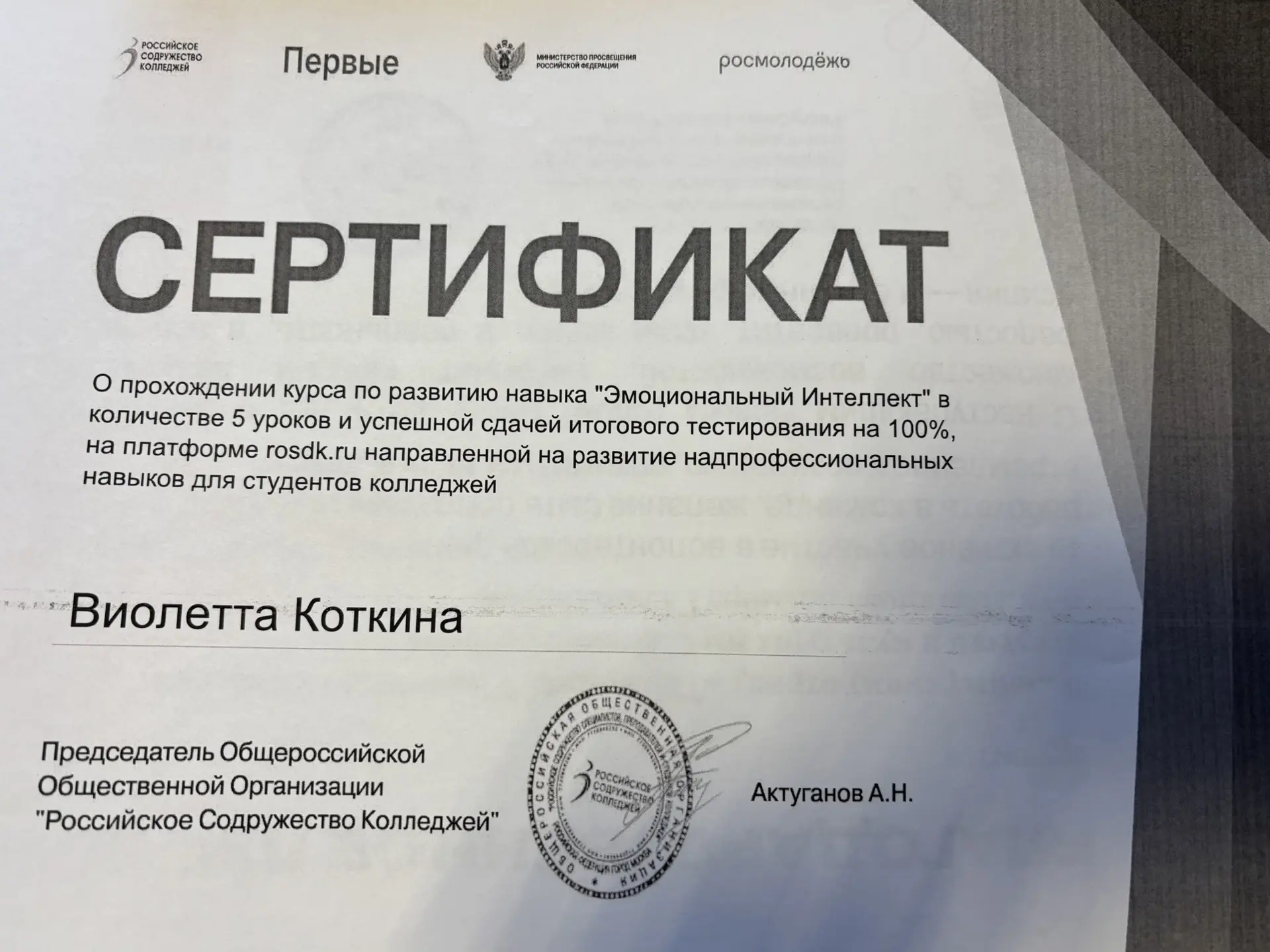 Председатель Совета первичного отделения: Коткина Виолетта Максимовна (2 курс, отделение ХНП)