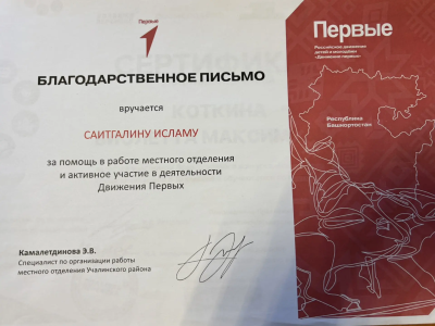 20 февраля 2023 года по инициативе студентов колледжа открыто первичное отделение Российского движения детей и молодежи «Движение первых» на базе ГБПОУ РБ Учалинский колледж искусств и культуры им.С.Низаметдинова.